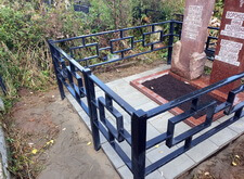 Клиент пожелал сохранить старое надгробье, а потому его мы попросту переустановили, параллельно с этим установив по периметру участка простую металлическую оградку. Все работы велись строго по уровню, а потому перекосы ограждения или надгробья абсолютно исключены.