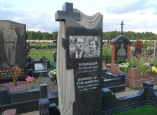 В данном заказе необходимо было изготовить памятник, достаточно не стандартной формы. Нанести изображение усопшей пары. Кроме этого на надгробной плите необходимо было нанести фамильный герб.