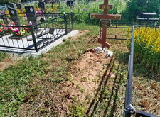 В данном случае нам предстояло полное благоустройство участка. Изначально на территории могилы был только невысокий холмик и простой деревянный крест.